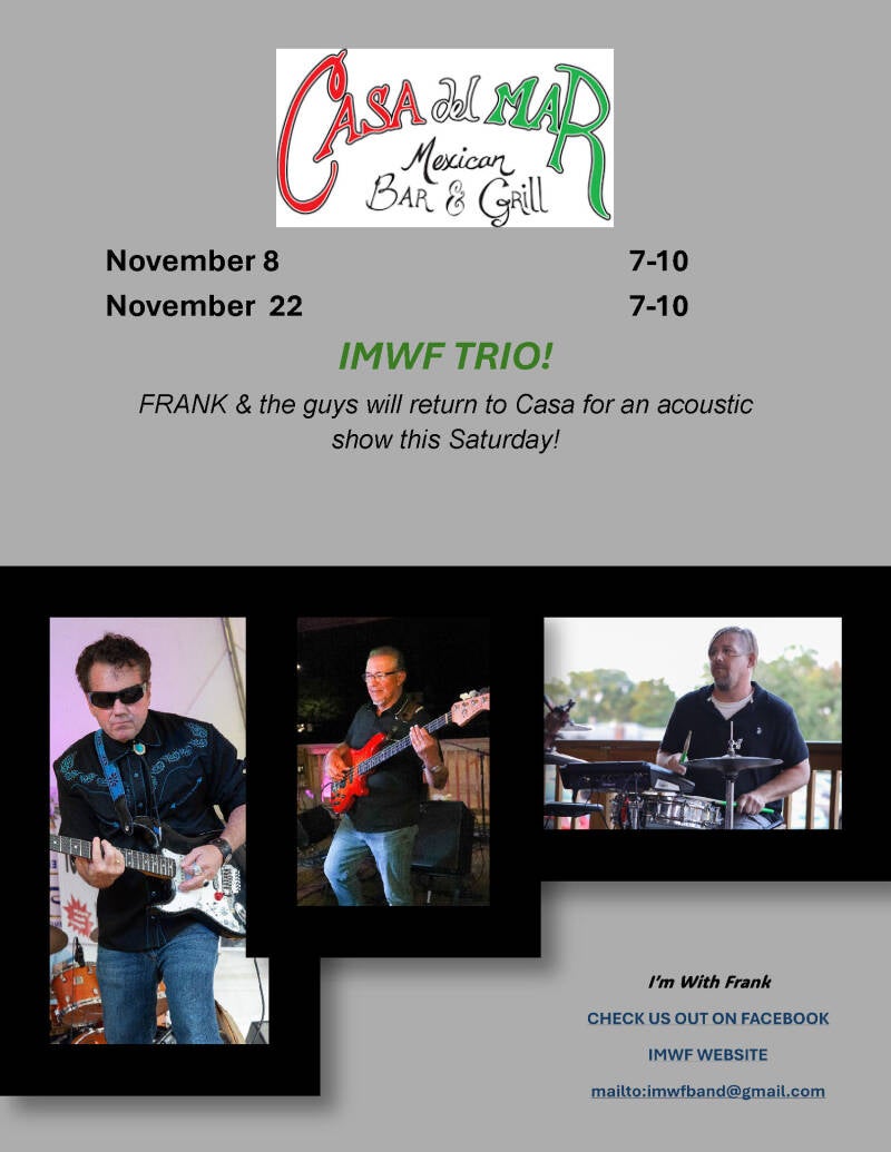 Catch I'm With Frank at various live music venues. The energy is always high, and the music is always great!